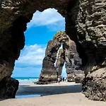 Overlooking the mountain, the beachfront 1-bedroom Atico Con Vistas A La Ria Y A Foz Apartment Barreiros is 6 km from Basilica of Saint Martin de Mondonedo. The apartment is equipped with a hot tub, creating a more enjoyable ambiance for guests.